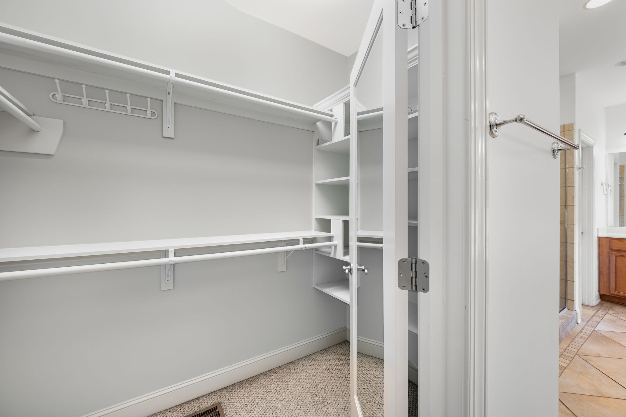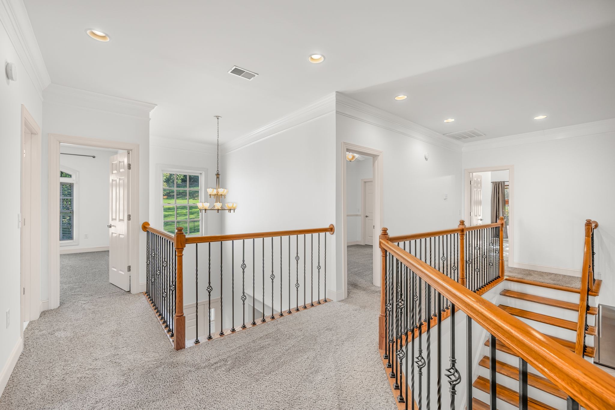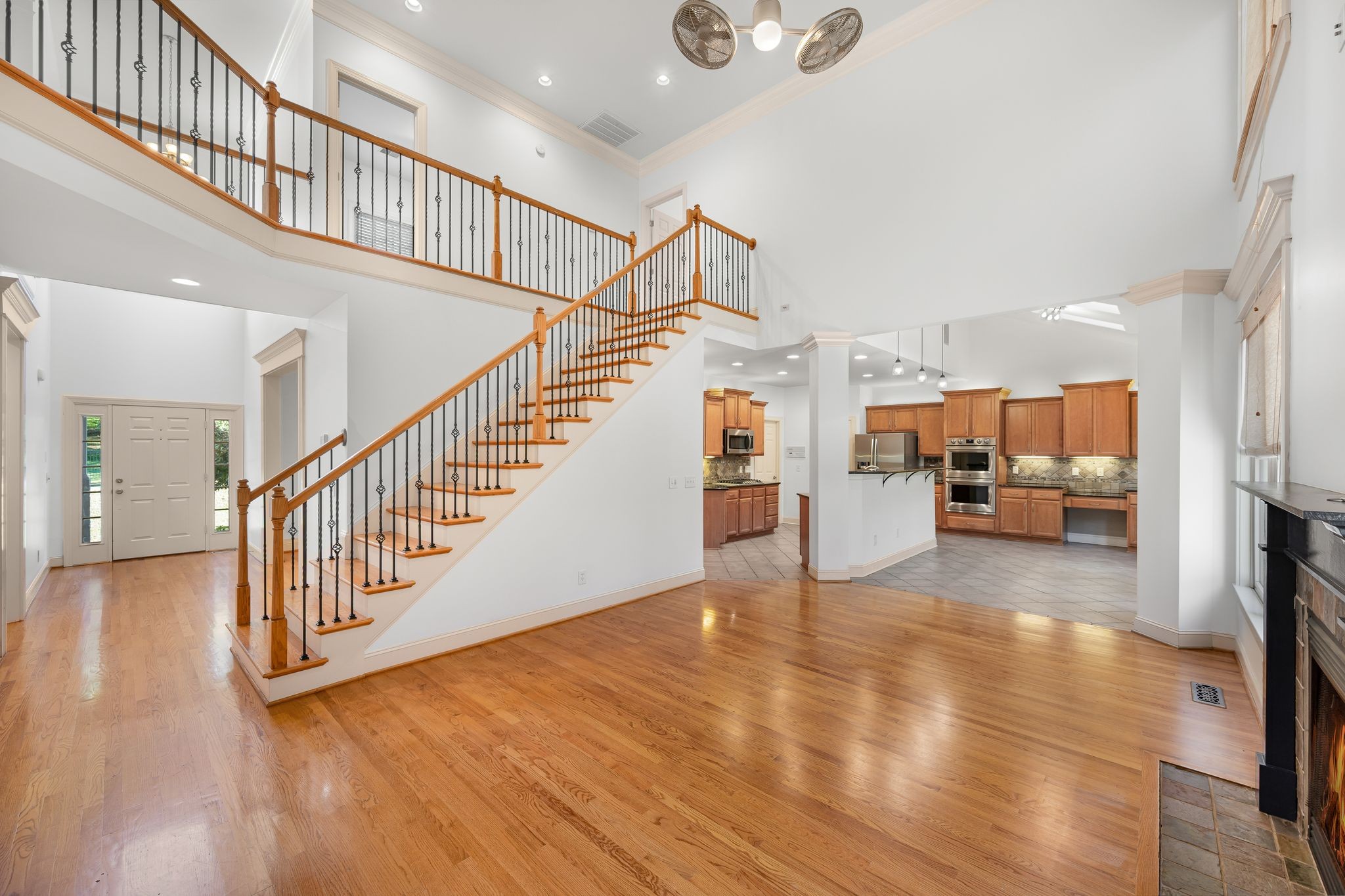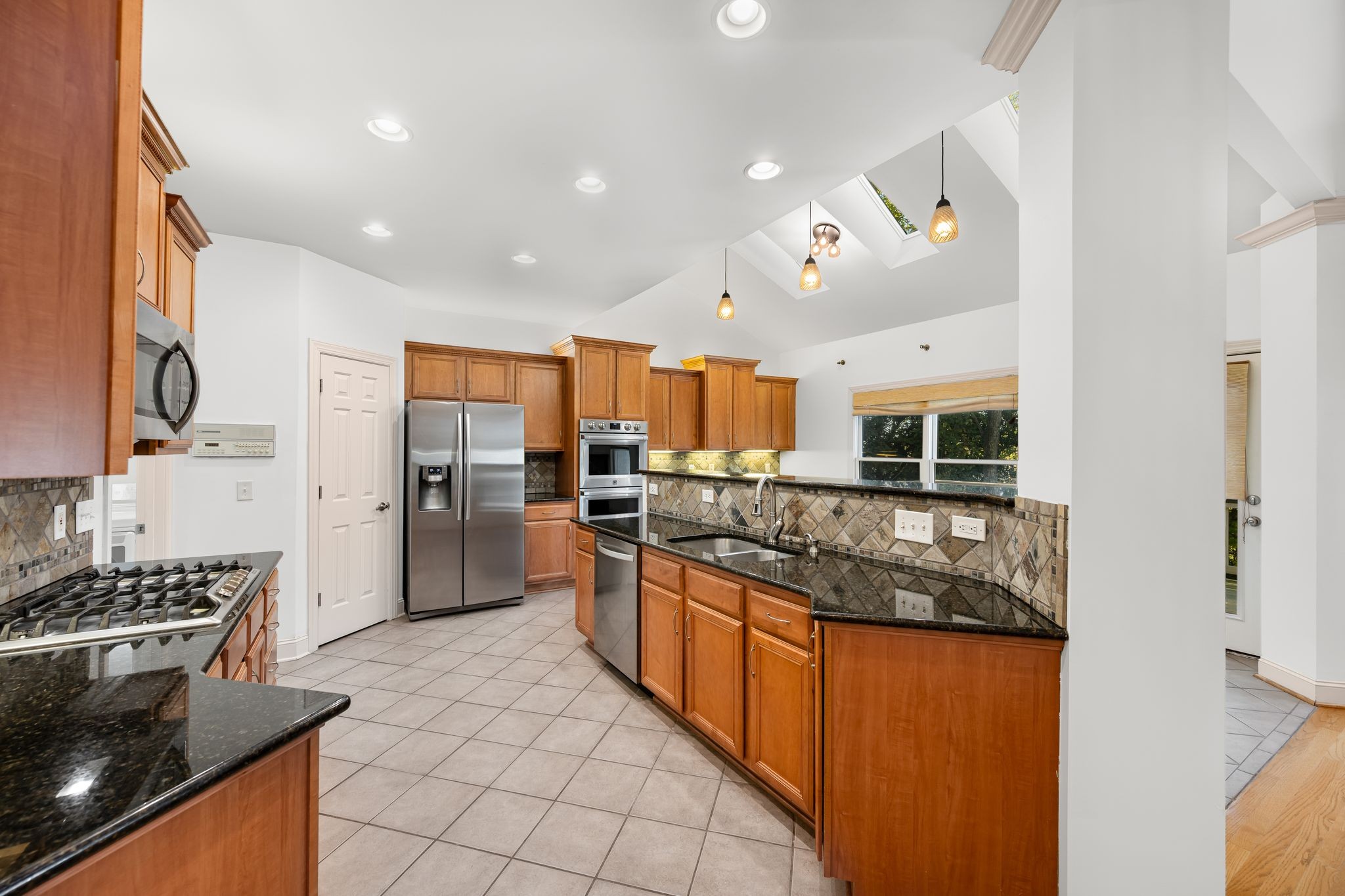 Additional features include dual laundry rooms, a home theater, intercom system, saferoom, and several flex spaces that can serve as a home office, gym, or playroom. The fenced backyard overlooks mature trees.